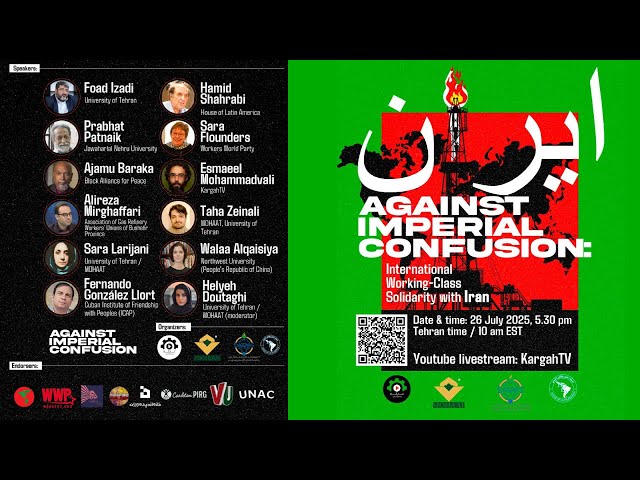در پی حملات هماهنگ نظامی اسرائیل و ایالات متحده به ایران و افزایش تحریف روایتها در فضای رسانهای غرب، جمعی از کنشگران، استادان دانشگاه و فعالان کارگری از ایران و جهان روز شنبه ۴ مرداد ۱۴۰۴ ساعت ۱۷:۳۰ به وقت ایران، نشستی با عنوان «در برابر سردرگمی امپریالیستی: همبستگی کارگری جهانی با ایران» برگزار میکنند. این نشست دوساعته، بهصورت آنلاین و با پخش زنده از زوم و یوتیوب کارگاه تیوی برگزار خواهد شد و به بررسی تجربه ۱۲ روز مقاومت مردمی در ایران، نقش طبقه کارگر و نقد روایتهای غربمحور درباره ایران و منطقه میپردازد.