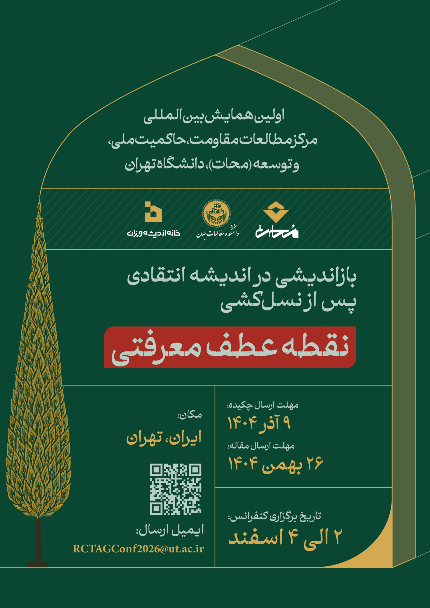 در چارچوب همین تلاش جمعی، «مرکز مطالعات مقاومت، حاکمیت و توسعه»، که بهتازگی در دانشگاه تهران —که جایگاهی راهبردی دارد— بنیان گذاشته شده، با افتخار نخستین همایش خود را اعلام میکند که از ۲۱ تا ۲۳ فوریه ۲۰۲۶ (۲ تا ۴ اسفند ماه ۱۴۰۴) در تهران برگزار خواهد شد. موضوع این همایش بهطور عام و میانرشتهای طراحی شده است تا محققان، اندیشمندان و دانشجویانی را گرد هم آورد که به بررسی مقاومتهای ضد-استعماری در منطقهٔ عربی-ایرانی میپردازند.